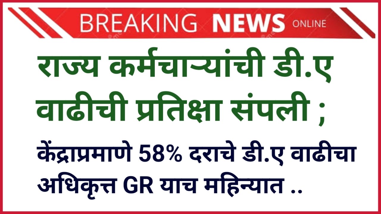 राज्य कर्मचाऱ्यांची डी.ए वाढीची प्रतिक्षा संपली ; केंद्राप्रमाणे 58% दराचे डी.ए वाढीचा अधिकृत्त GR याच महिन्यात !