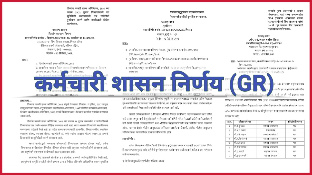 - राज्य कर्मचाऱ्यांच्या बाबतीत दि.03.12.2025 रोजी निर्गिमित करण्यात आले 03 मोठे महत्वपुर्ण शासन निर्णय (GR) !