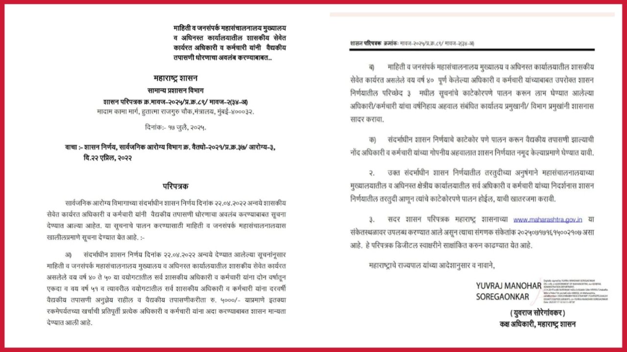 वय वर्षे 40 वर्षापेक्षा अधिक असणाऱ्या कर्मचाऱ्यांसाठी अत्यंत महत्वपुर्ण GR  दि.17.07.2025