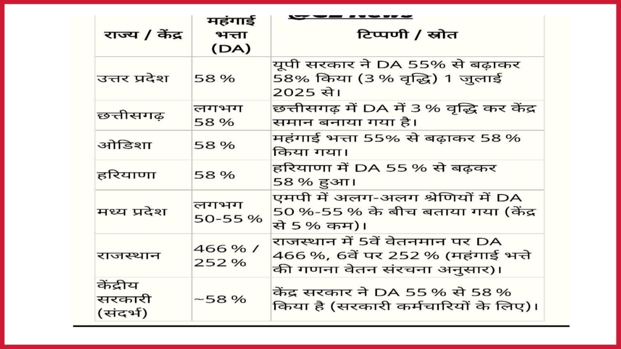 त्याच धर्तीवर देशातील इतर राज्य सरकारने राज्य कर्मचाऱ्यांच्या डी.ए मध्ये 3 टक्के वाढ लागु करण्यात आलेली आहे . कोण-कोणत्या राज्यांनी किती टक्के वाढ लागु केली आहे . या संदर्भातील सविस्तर माहिती पुढीलप्रमाणे जाणून घेवूयात .